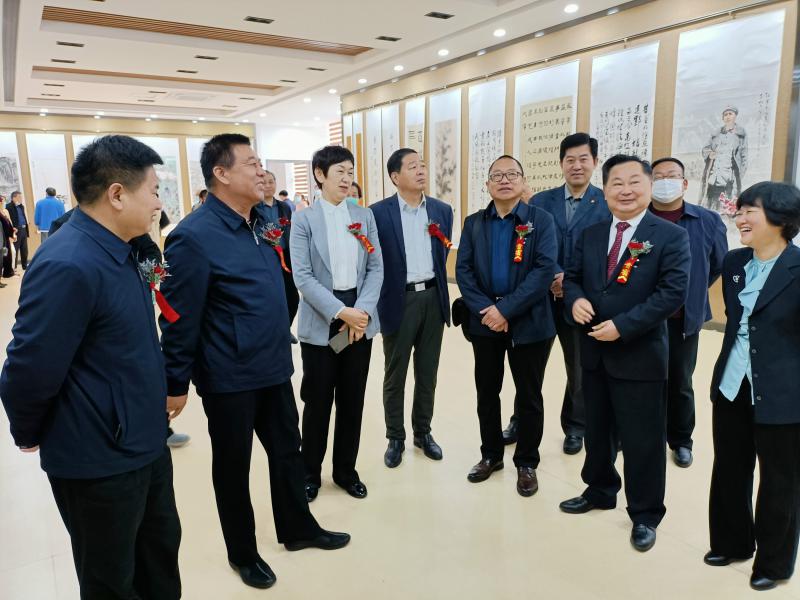 濟寧市政協(xié)一級調研員,濟寧市政協(xié)書畫聯(lián)誼會副會長、秘書長徐祥放,濟寧市政協(xié)教科衛(wèi)體委員會副主任王宏偉,九三學社濟寧市委副主委劉要武,濟寧市美術家協(xié)會副主席、濟寧九三學社畫院院長李新雁,民建濟寧市委秘書長劉訓闊,民進濟寧市委秘書長張學鵬,民盟濟寧市委副主委兼秘書長劉小穎及民盟市委委員、各基層組織主委,民盟中央美術院濟寧分院、濟寧民盟書畫院的書畫家們等70余人參加開幕式。
