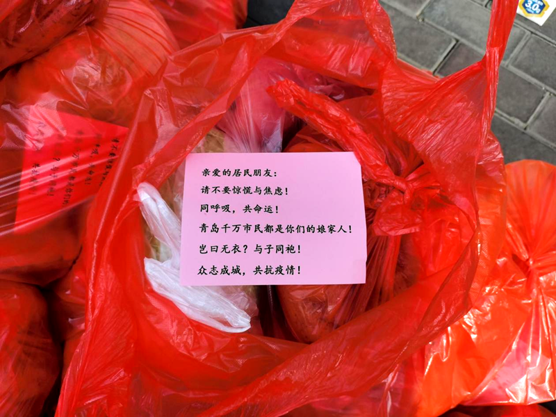 “隔離人員,不隔離真情;阻斷病毒,不阻斷初心。字短情長(zhǎng),希望能給隔離居民一點(diǎn)來自‘娘家人’的支持和鼓勵(lì),把勇氣和力量傳遞給這些居家隔離居民,共同打贏新冠疫情傳播阻擊戰(zhàn)!民盟青島市北經(jīng)濟(jì)總支主委李錫明如是說。