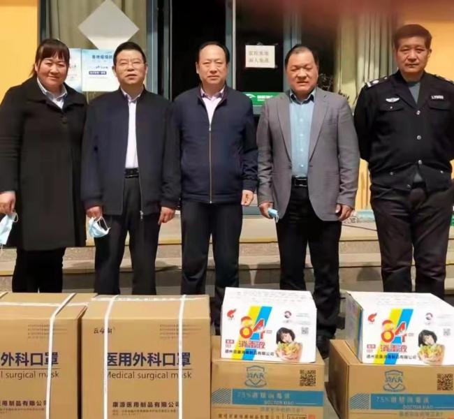 3月24日,民盟臨沂經(jīng)濟(jì)總支主委、康源金豐醫(yī)藥供應(yīng)鏈有限公司董事長(zhǎng)蕭衛(wèi)生向祥園社區(qū)捐獻(xiàn)醫(yī)用外科口罩4000個(gè)、消毒液四箱,助力社區(qū)疫情防控。中共臨沂市委統(tǒng)戰(zhàn)部黨派科科長(zhǎng)、四級(jí)調(diào)研員彭學(xué)農(nóng),民盟臨沂市委會(huì)秘書(shū)長(zhǎng)閆光星參加捐助活動(dòng),共同把防疫物資運(yùn)送到社區(qū)服務(wù)中心,受到社區(qū)工作人員的熱烈歡迎。