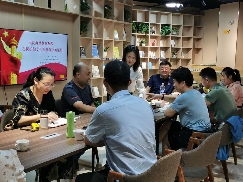 活動邀請了民盟盟員、山東寧泰律師事務所律師呂雪蓮和民盟盟員、山東舜翔(棗莊)律師事務所副主任朱緒發(fā)為大家作了《民法典在合法權益中的運用》等專題講座。呂雪蓮詳細介紹了《民法典》的立法背景、主要內(nèi)容、時代特色和新舊條文不同之處,并結(jié)合具體案列重點講述了《民法典》七大編之一的婚姻家庭編,從基礎知識、主要亮點、特殊群體權益保護以及婚姻家庭糾紛處理四部分內(nèi)容進行了深入淺出、生動鮮明的講解。朱緒發(fā)圍繞婚姻中如何保護婦女權益、怎樣規(guī)避生活中的債務糾紛和財務風險等細節(jié)問題與大家進行了交流分享。隨后,盟員們紛紛交流了自己的意見和看法,兩位律師針對盟員們在生活見聞中涉及到的相關法律問題進行了答疑解惑。