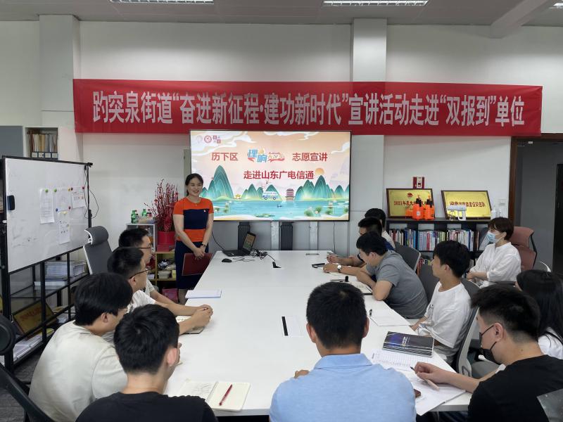 7月7日下午,民盟山東省話劇院支部盟員夏凡斐走進趵突泉街道山東廣電信通開展文化志愿服務(wù),與青年朋友們圍繞“奮進新征程,建功新時代”展開熱烈的討論,并發(fā)揮自身專業(yè)優(yōu)勢,指導(dǎo)青年朋友們學(xué)習(xí)演講技巧,為講好齊魯英雄人物、傳播山東正能量添彩助力。通過這次活動,不僅加深了廣大青年以及盟員對老一輩新中國建設(shè)者們不屈不撓精神的理解和認識,也為激勵大家堅定理想信念,增強歷史使命感和責(zé)任感提供了良好的契機。