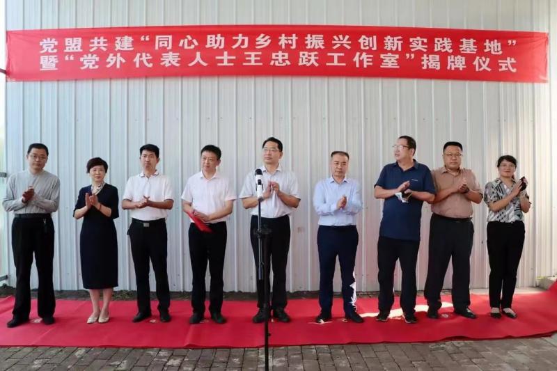 為深入開(kāi)展“矢志不渝跟黨走、攜手奮進(jìn)新時(shí)代”政治交接主題教育,構(gòu)建民主黨派社會(huì)服務(wù)助力鄉(xiāng)村振興的有效途徑,近日,民盟濱州市委會(huì)聯(lián)合中共博興縣委統(tǒng)戰(zhàn)部共建“同心助力鄉(xiāng)村振興創(chuàng)新實(shí)踐基地”暨全市首個(gè)黨外代表人士“王忠躍工作室”揭牌儀式在濱州市博興縣曹王鎮(zhèn)舉行。市政協(xié)副主席、民盟濱州市委會(huì)主委萬(wàn)永格,中共濱州市委統(tǒng)戰(zhàn)部副部長(zhǎng)、市社會(huì)主義學(xué)院副院長(zhǎng)高令章,中共博興縣委副書(shū)記王普,中國(guó)農(nóng)業(yè)科學(xué)院植物保護(hù)研究所研究員、民盟中國(guó)農(nóng)科院委員會(huì)二支部原主委王忠躍,民盟濱州市委會(huì)秘書(shū)長(zhǎng)盛全城和博興支部全體盟員參加了揭牌儀式。