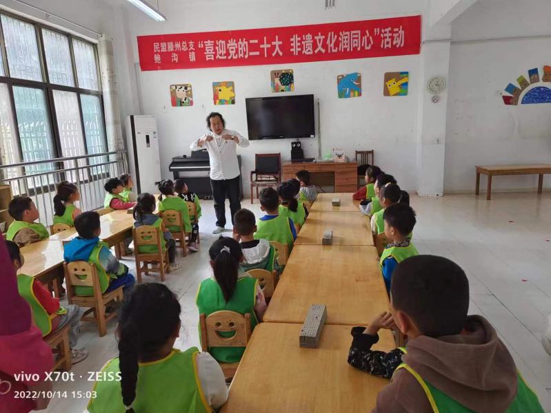 10月14日,民盟棗莊滕州市總支到鮑溝鎮(zhèn)中心幼兒園劉西園開(kāi)展“喜迎黨的二十大 非遺文化潤(rùn)同心”活動(dòng)。