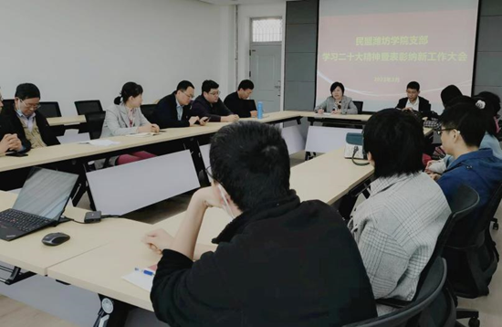 張守德領(lǐng)學(xué)了中共二十大和習(xí)近平總書記相關(guān)重要講話精神,要求支部盟員認(rèn)真學(xué)習(xí)領(lǐng)悟中共二十大提出的新思想新論斷、作出的新部署新要求,與自身從事的教學(xué)工作結(jié)合起來,為濰坊學(xué)院的發(fā)展作出貢獻(xiàn)。