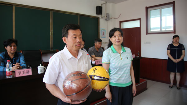 民盟省委組織部部長(zhǎng)孫巖巖代表機(jī)關(guān)向?qū)W校捐贈(zèng)體育用品