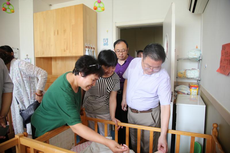 帶著對孩子們的牽掛和關(guān)愛,民盟省委機關(guān)一行人在福利院工作人員的引領(lǐng)下,參觀了康復、育嬰、啟蒙、教育、治療、保健等各個功能區(qū),福利院工作人員向田興松等人介紹了兒童的日常生活、治療康復情況等。孩子們的一舉一動深深吸引著盟員們的心,他們不時地撫摸、親切擁抱身邊的孩子,耐心地向工作人員詢問孩子們的康復和教育狀況。