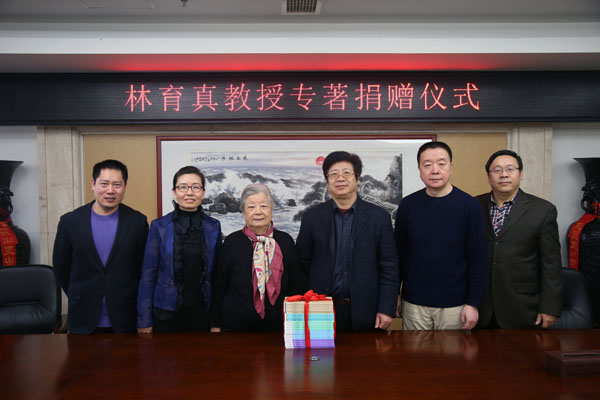 2017年12月28日,老盟員林育真教授攜帶最新出版的個人專著來到民盟省委機(jī)關(guān),親自捐贈給民盟省委“一多圖書室”。民盟省委專職副主委董利忠出席捐贈儀式并代表民盟省委機(jī)關(guān)接受林育真教授的捐贈。