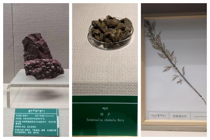 藏醫(yī)藥學(xué)對藥物的認(rèn)識獨(dú)具特色:“地上無物非藥,藥即毒來毒亦藥,用之得當(dāng)則謂藥,用之失當(dāng)則為毒”。藏藥標(biāo)本展廳展出有2000多件分布在青藏高原的動物、植物、礦物標(biāo)本,是展示給參觀者的高原生物學(xué)最精彩、最集中的課堂。一件件精美的標(biāo)本、一幅幅生動的照片,形象地展現(xiàn)了青藏高原特殊的自然環(huán)境中生機(jī)勃勃的藥物生長環(huán)境。其中獨(dú)具特色有利用汞、金、銀等原料經(jīng)特殊工藝炮制而成的、被譽(yù)為“甘露精華之王”的“佐太”。還有已收入國家藥物基本目錄、受國家中藥保護(hù)品種的七十味珍珠丸、仁青常覺等成藥,也有我們經(jīng)常使用的安兒寧顆粒、青鵬軟膏等。