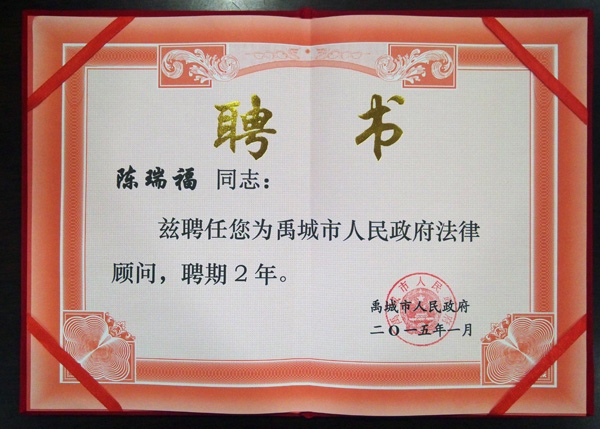 近日,盟員陳瑞福先后被山東省禹城市人民政府和內(nèi)蒙古達爾罕茂明安聯(lián)合旗(簡稱“達茂聯(lián)合旗”)人民政府聘為政府法律顧問,為盟員發(fā)揮自身特長為政府依法行政提供法律服務(wù)揭開了新篇章。