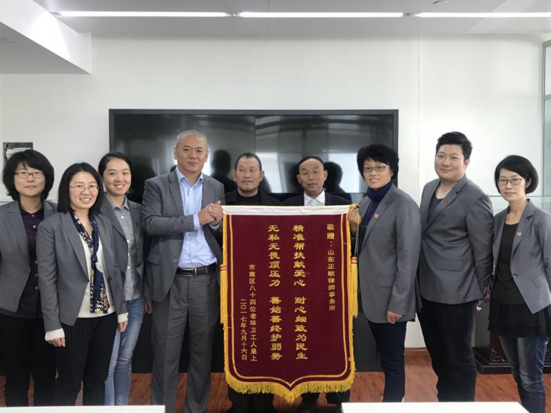 長期以來,李秋航非常重視婦女兒童等弱勢群體權(quán)益的保護(hù)工作。2014年,市南區(qū)83位環(huán)衛(wèi)工人慕名來所求助。李秋航了解到,因為遭受不公正的勞動待遇,八十余名年邁工人不但已經(jīng)身心俱疲,而且逐漸失去了依法維權(quán)的信心和耐心,并籌備進(jìn)京上訪鬧訪。為穩(wěn)定工人情緒,為化解鬧訪壓力爭取時間,李秋航帶領(lǐng)全所律師連夜幫助工人們制定維權(quán)方案,并親自為工人們解惑答疑。在案件進(jìn)展的三年多時間里,李秋航不但親自奔走在法律一線,也不忘給予各位工人精神慰藉和人文關(guān)懷,只要環(huán)衛(wèi)工人們來到正航所,就一定有熱氣騰騰的飯菜和茶水。經(jīng)過三年多的努力,李秋航帶領(lǐng)律所頂住各方壓力,終于在十九大召開之前成功的幫助市南區(qū)83位環(huán)衛(wèi)工人爭取到了88余萬元的勞動補(bǔ)償款,切實地維護(hù)了社會弱勢群體的合法權(quán)益,有效地遏制了環(huán)衛(wèi)工人集體上訪給青島市政府帶來的不利影響,成為青島市司法局重大維穩(wěn)案例。